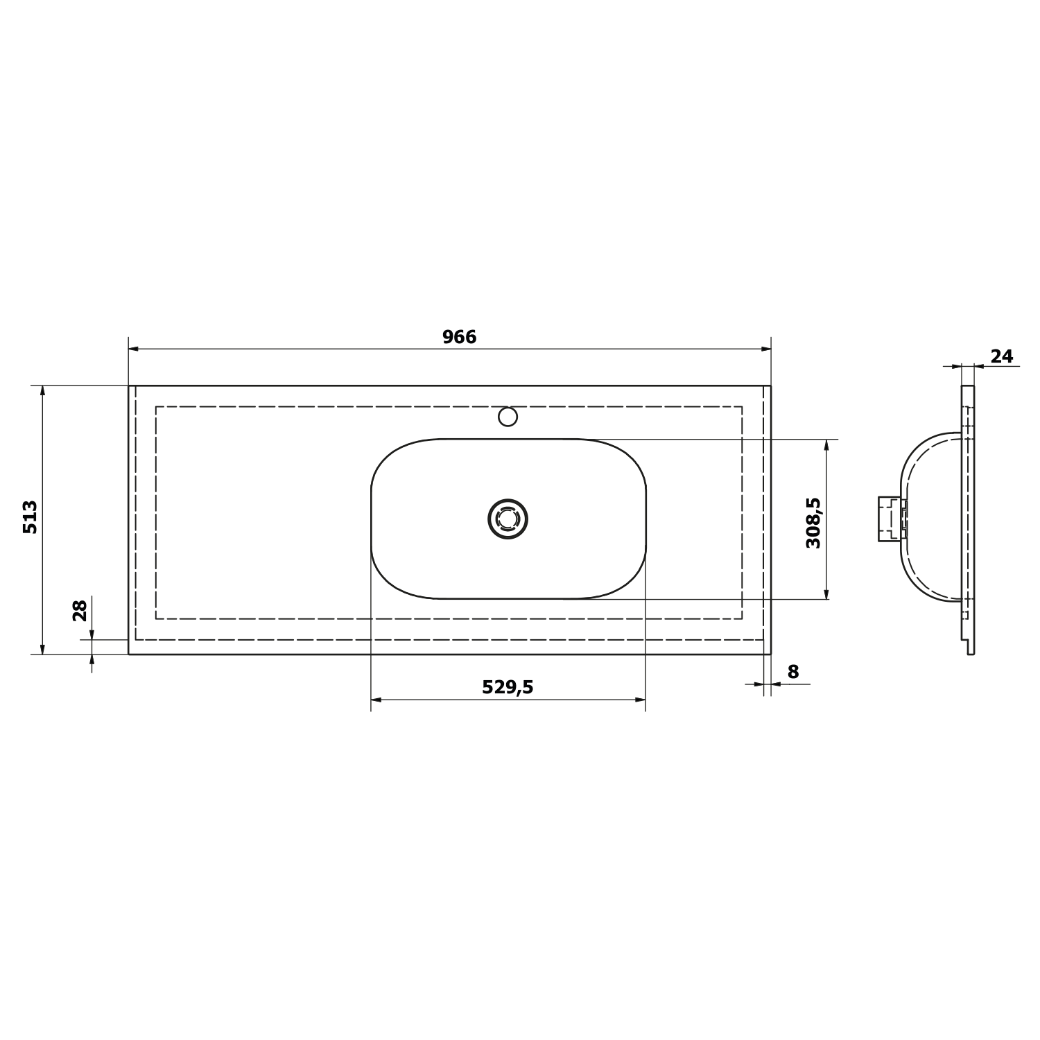 TREOS umývadlo 96,6x51,3 cm (20+75), Rockstone, pravé, biela matná